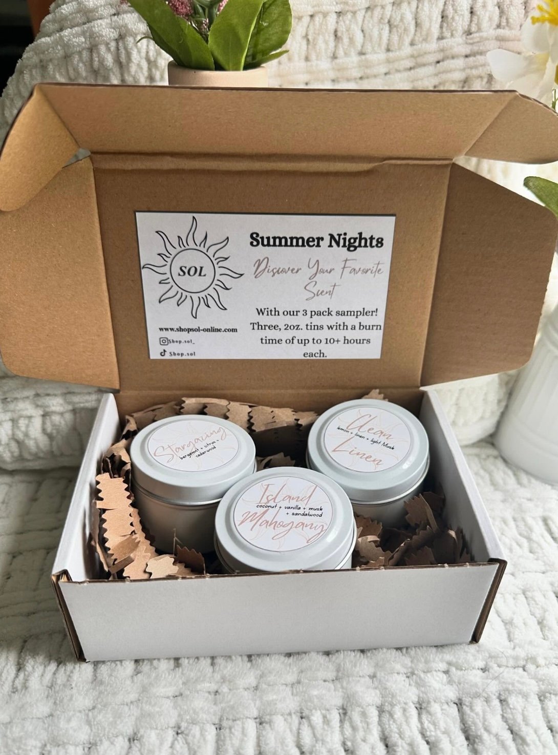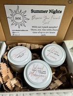 Check out our three pack Summer Nights sampler and find your favorite! With our 2 oz mini candles you get a sampler pack of: